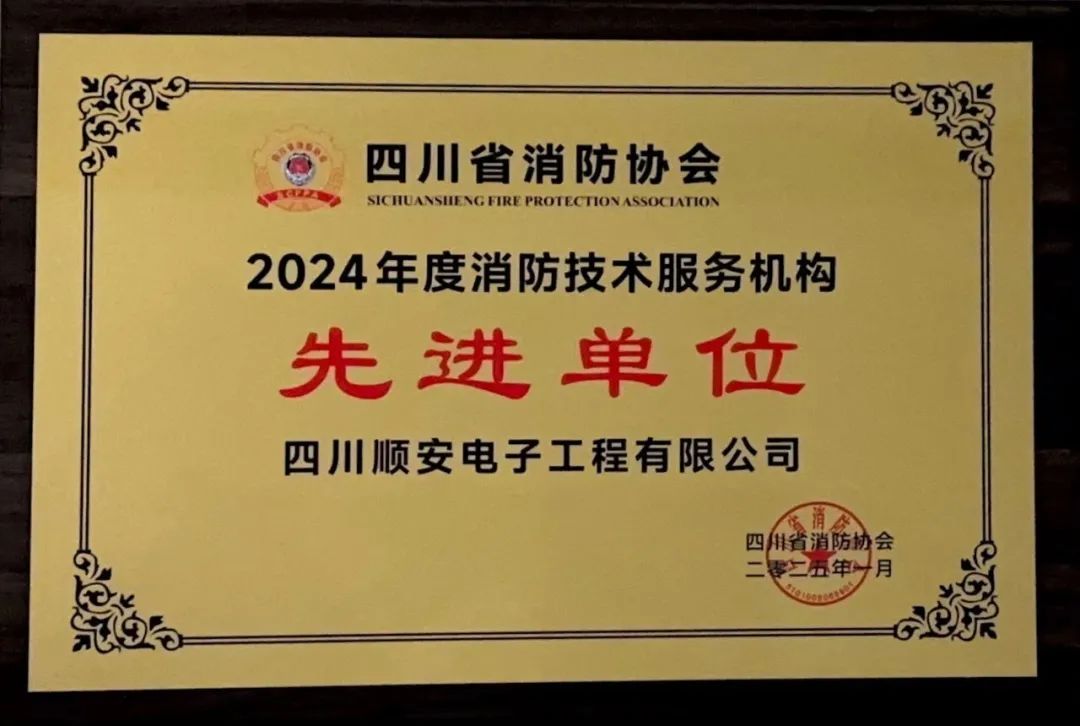 四川顺安电子工程有限公司荣获“2024年度消防技术服务机构”******单位