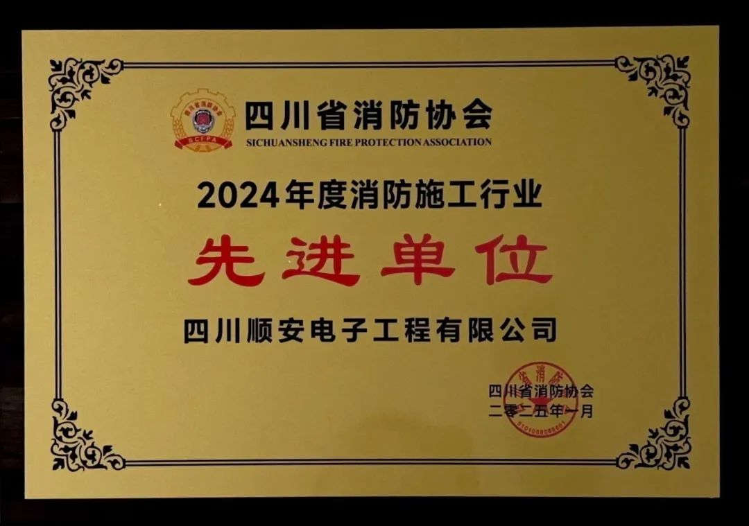 四川顺安电子工程有限公司荣获“2024年度消防施工行业”******单位